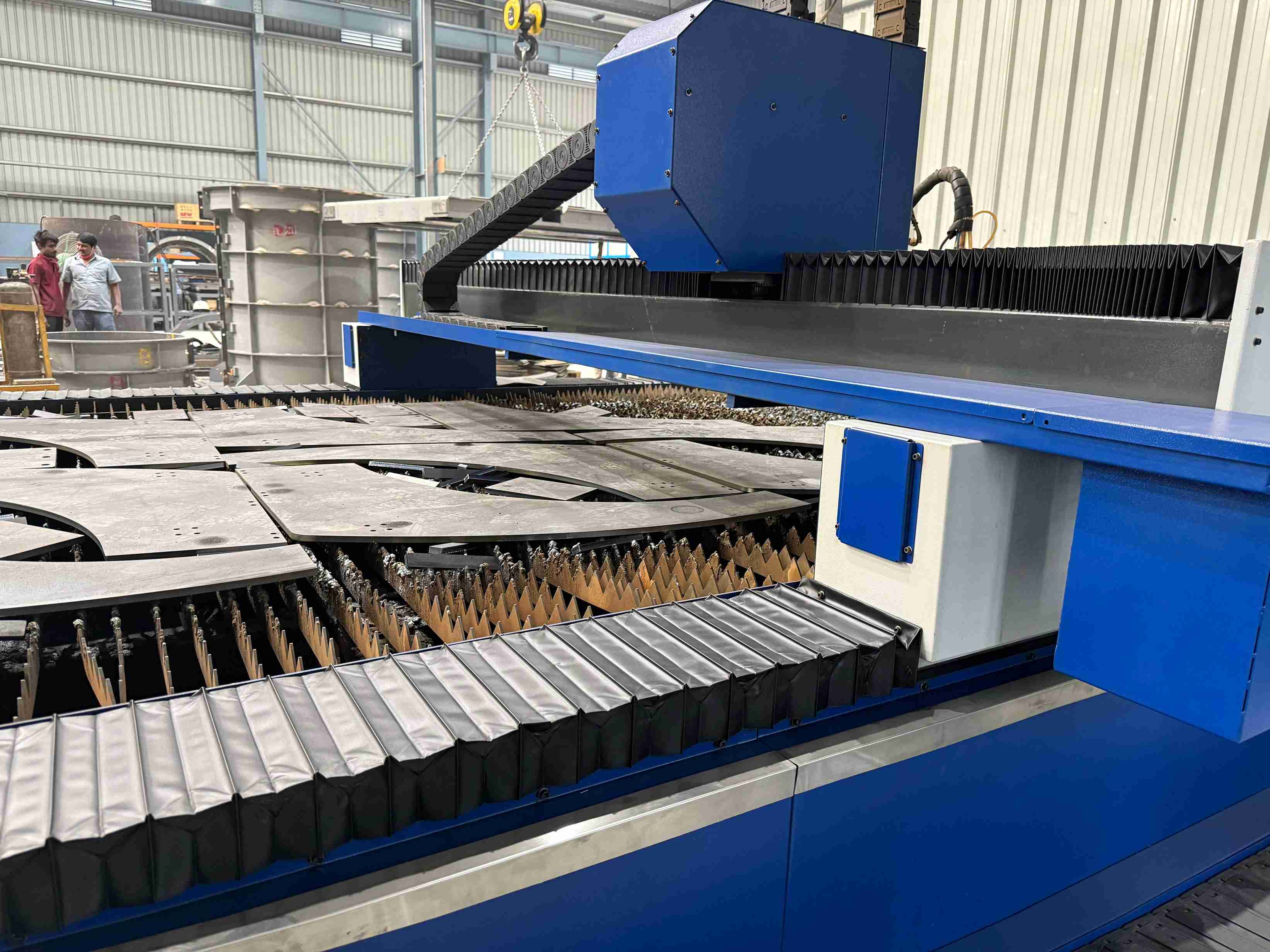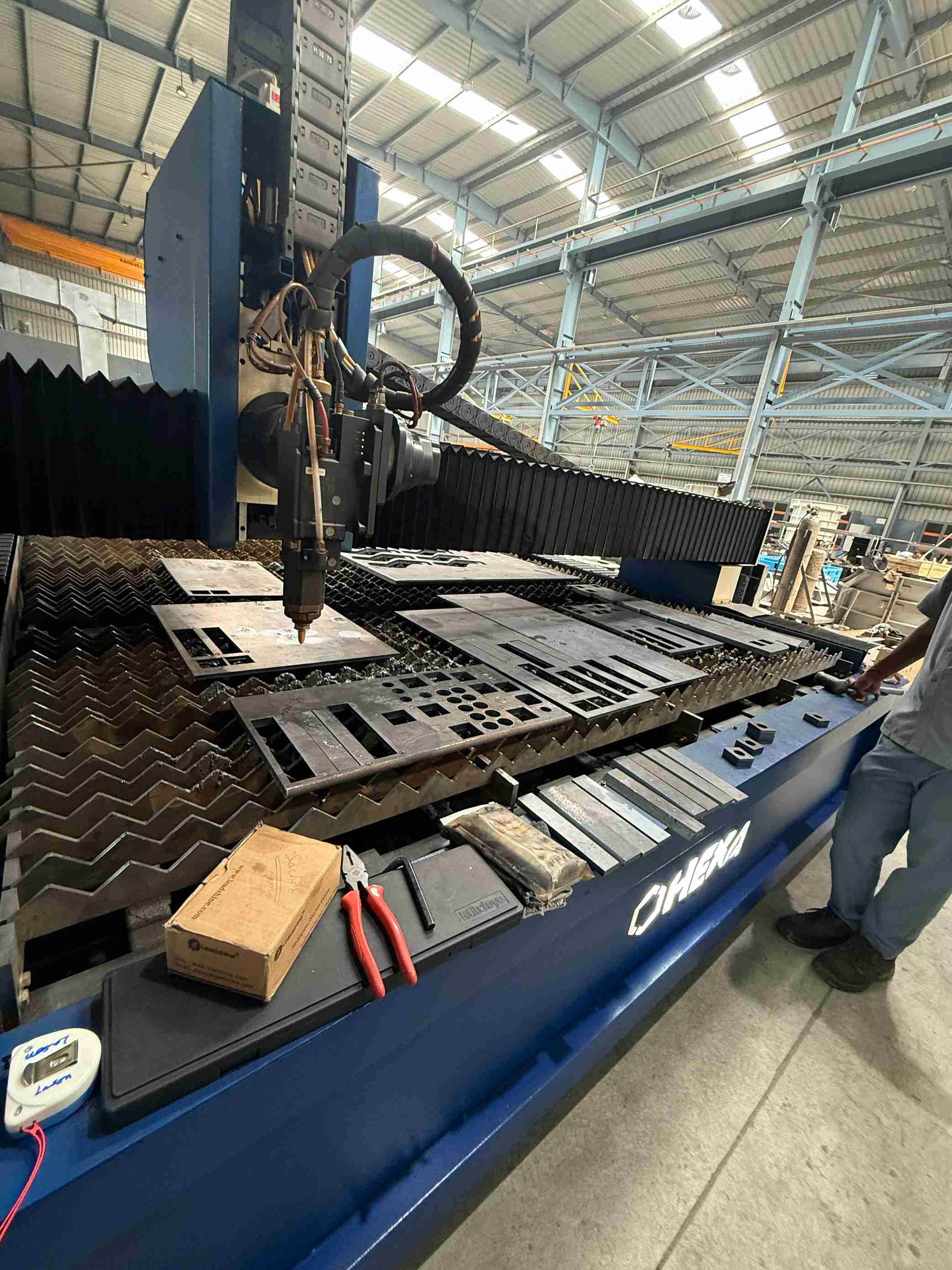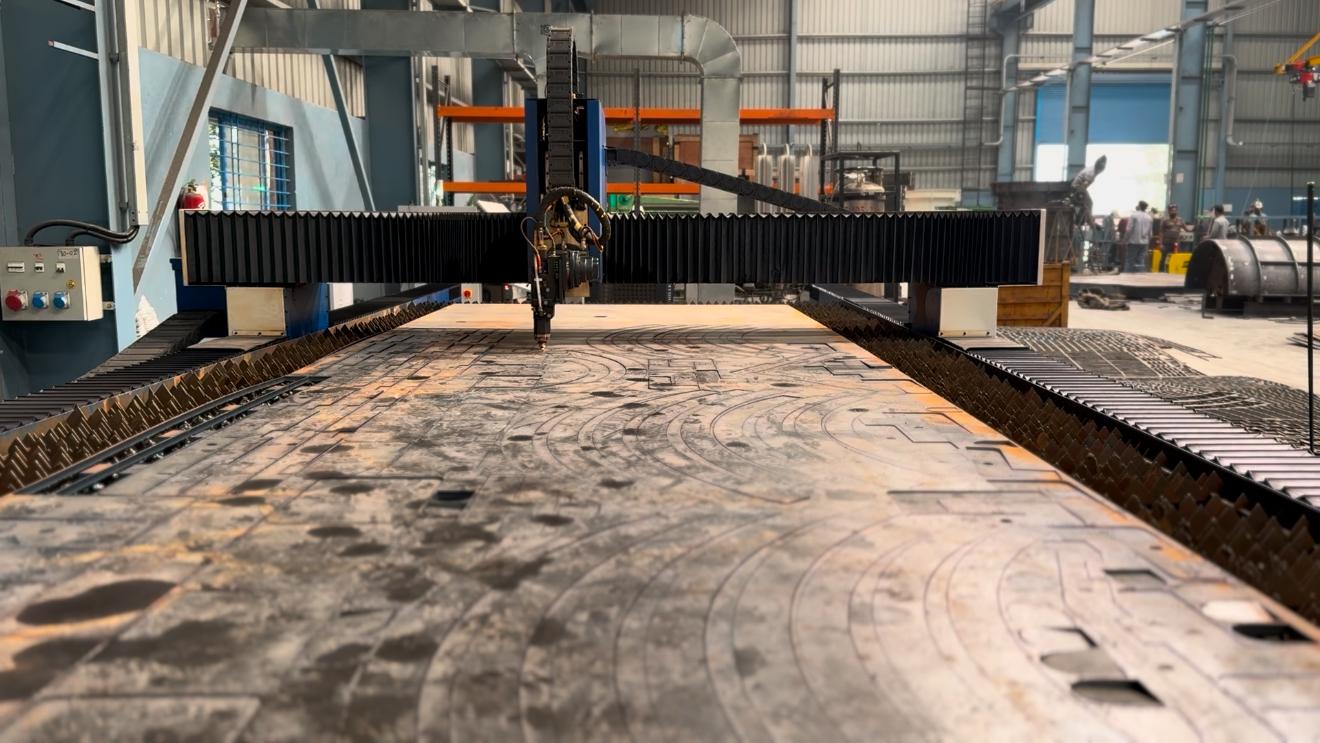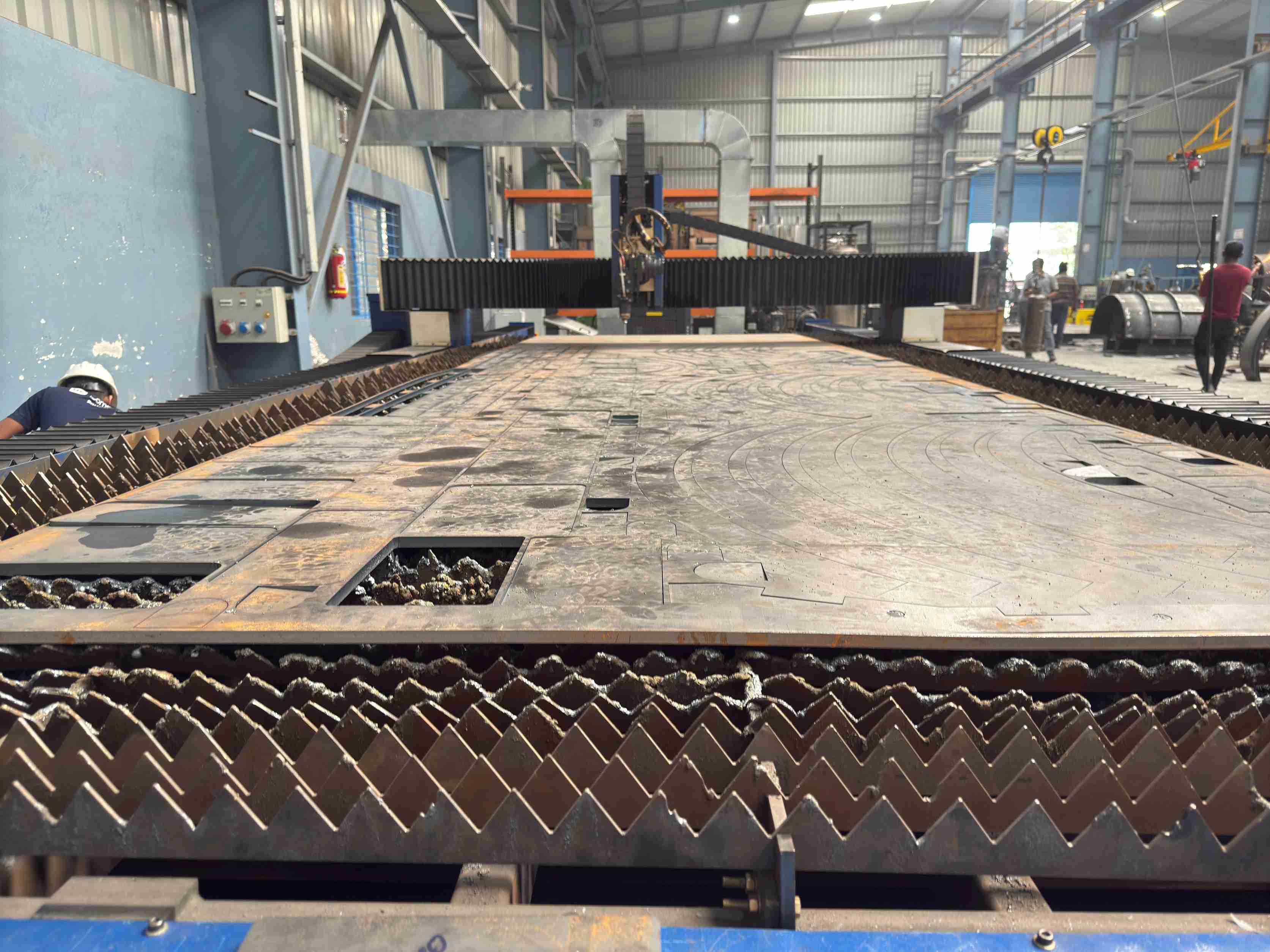 20mm Mild Steel cutting, 2.2m X 6.2m sheet size cutting 2 shifts everyday at customer’s site