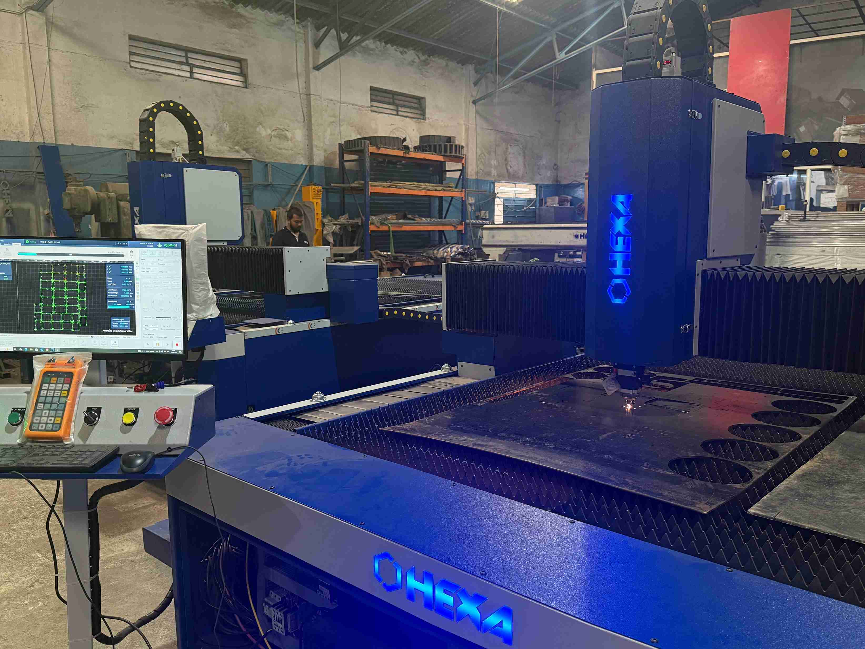 Hexa HX1665E-2kW machine at customer site cutting